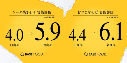 外部で実施した官能評価(おいしさの評価)※4の結果をみても、旧商品(BASE PASTA ソース焼きそば/旨辛まぜそば)との比較でも大幅に向上しており、また試食時のコメントもポジティブなお声を多くいただいています。