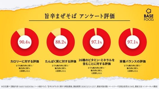 喫食調査※3においても、「BASE YAKISOBA ソース焼きそば」「BASE YAKISOBA 旨辛まぜそば」共に、以下の通りポジティブな評価となっています。