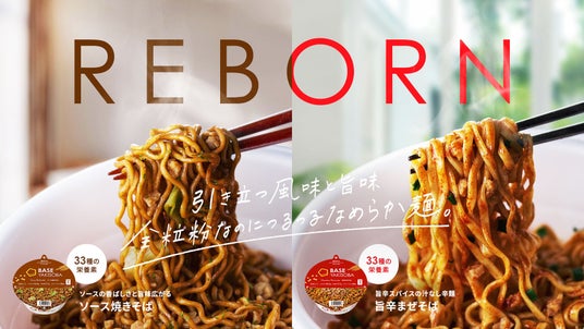今回新登場する「BASE YAKISOBA」シリーズは、そのコンセプトはそのままに、より多くの方に、より継続して食べていただけるよう“おいしさを追求”した「REBORN版」として生まれ変わった商品です。