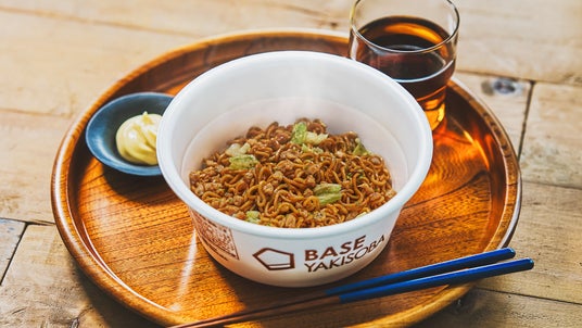 「BASE YAKISOBA ソース焼きそば」は、スパイシーなソースの香ばしさと旨味が広がり、キャベツの具材感と共に、昔お家で食べたことがあるようなどこか懐かしさを感じるやさしい味わいのソース焼きそばを再現しています。