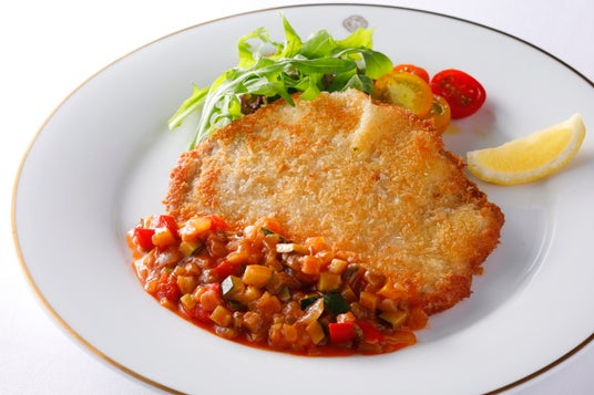 青森県産“長谷川の自然熟成豚”のミラノ風カツレツ ラタトゥイユソース ルッコラとカラートマトのサラダ添え