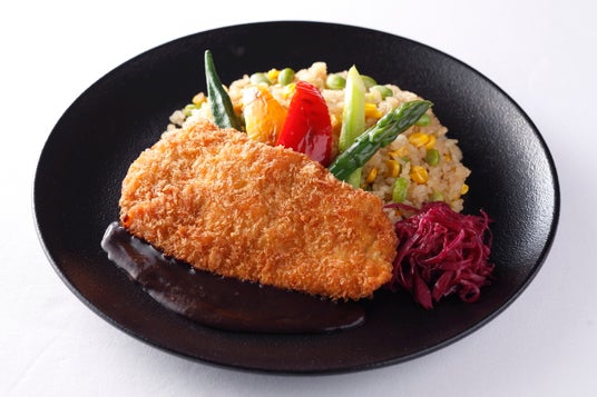 青森県産“長谷川の自然熟成豚”ロースのカツレツ 枝豆、トウモロコシのフライドライス添え アップルバルサミコのソース