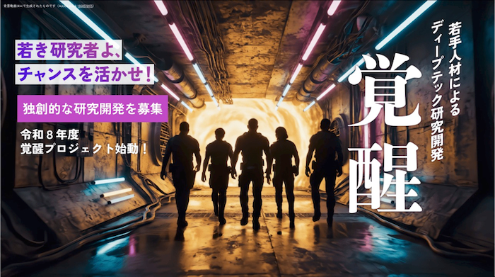 独創的な発想でディープテック・スタートアップに挑戦する若手人材が、その発想を形にするために研究開発を行い、技術シーズ化するには多くの障害が存在します。独力で技術シーズ化の競争を勝ち抜くことは困難を極めるというこの現状を背景に、経済産業省では、世界で戦えるディープテック・スタートアップの創出を目指した関連施策を推進しています(経済産業省 産業技術環境局、2023年2月20日、「ディープテック・スタートアップ関連の施策集」)。産業技術総合研究所はその一環として、ディープテック分野の高度研究人材を育成するため、2023年に若手研究人材を育成する事業「覚醒プロジェクト」を創設しました。