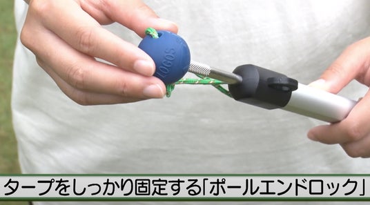 また、ポールエンドロック付きで、しっかりタープを固定できます。