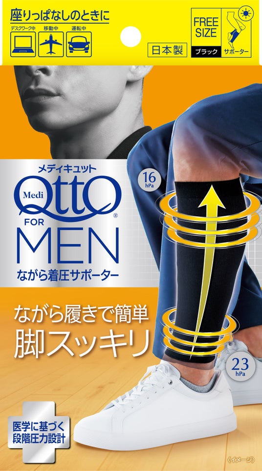 男性向けメディキュット待望の新製品登場!「メディキュット For MEN ながら着圧サポーター」仕事中、移動中など日常の“ながら履き”で簡単脚ケア習慣