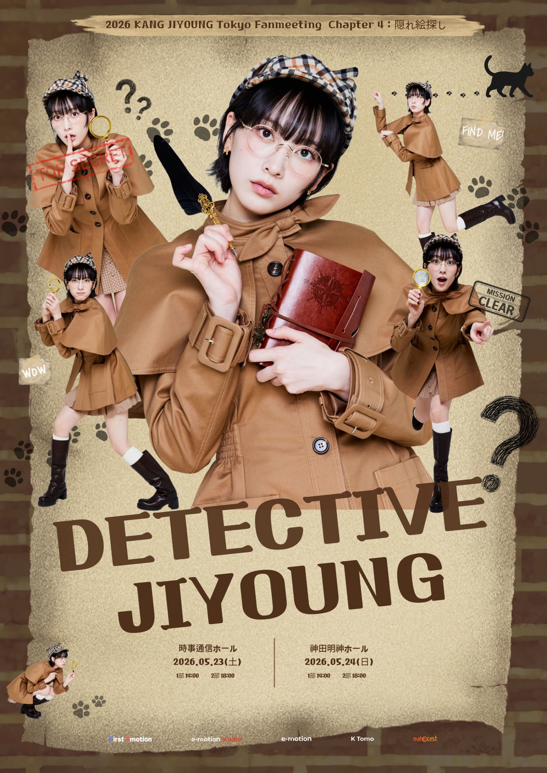 さらに本公演のイメージ画像が新たに公開された。 公開されたビジュアルでは、「DETECTIVE JIYOUNG」とし、知英が知的ながらもチャーミングな「探偵スタイル」に変身。チェック柄帽子とマント衣装に身を包み、虫眼鏡を手にしたキュートな姿は、まさに今回のコンセプトを象徴する仕上がりとなっており、「可愛すぎる探偵ジヨンに早く会いたい!」「どんな事件(ミッション)を一緒に解決するのか楽しみ」といった期待の声で早くも話題となっている。