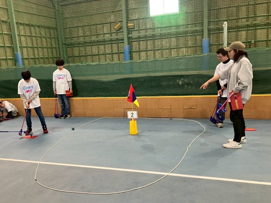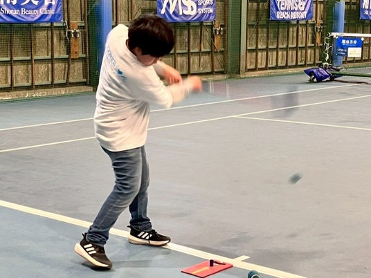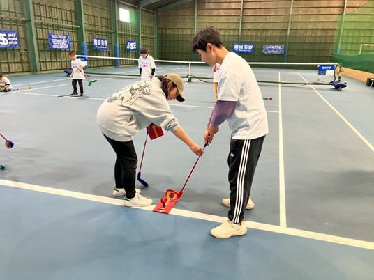 まずはローラーと呼ばれるクラブでパッティングを練習し、その後はランチャーでショットの練習をしました。うまく当たって大きな飛球が出ると大喜び!
