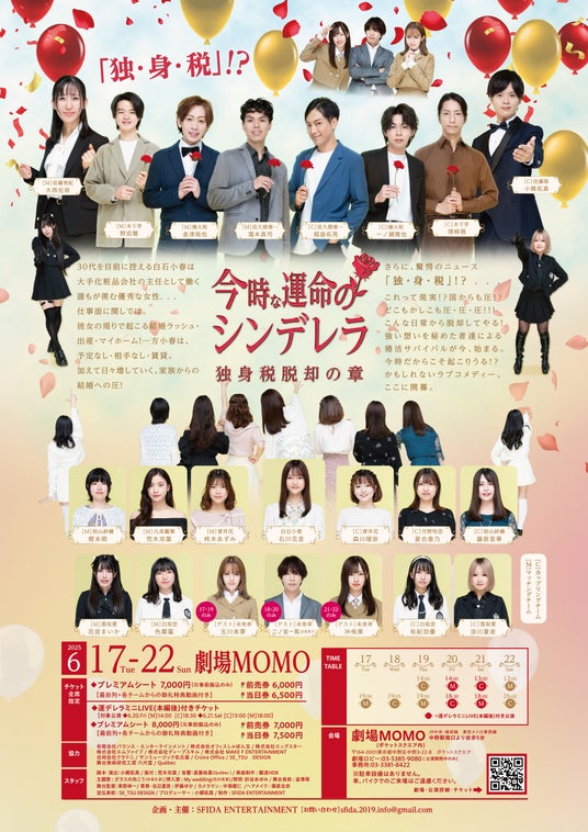SFIDA ENTERTAINMENT企画・主催、舞台『今時な運命のシンデレラ~独身税脱却の章~』が2025年6月17日(火)~6月22日(日)に劇場MOMO(東京都中野区中野3-22-8)にて上演されます。