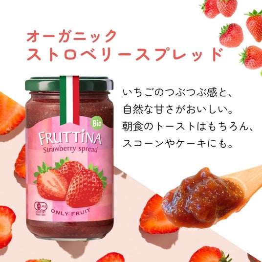 有機ストロベリースプレッド有機ストロベリー本来の自然な甘さが人気の定番に。