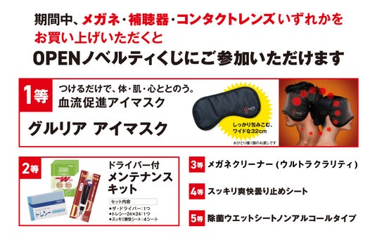 メガネ・補聴器・コンタクトレンズいずれかをお買い上げのお客様にご参加いただけます。
