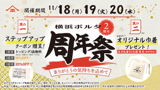 株式会社ガーデン(本社:東京都新宿区 代表取締役社長:川島賢 以下「当社」) が運営する、「山下本気うどん 横浜ポルタ」は、2024年11月18日(月)にオープン2周年を迎えます。ご愛顧くださるお客様への感謝の気持ちを込めて、「山下本気うどん 横浜ポルタ」にご来店いただいたお客様を対象とした「周年祭」を2024年11月18日(月)から11月20日(水)の3日間限定で開催いたします。