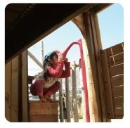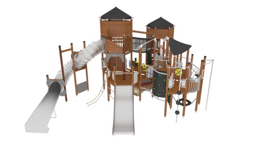 全長約11.8m、高さ約5.7m の大型複合遊具。お子様に理想的な、運動の基本的な動きを身につける遊びから、社会性・創造性を育む遊びまで対応します。全40種類の遊びが楽しめ、年齢や難易度に合わせたさまざまな挑戦と自由な遊び方により、遊びながら子どもの成長・発達を促す大切な感覚に働きかけます。