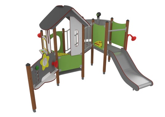 全長約3m、高さ約1.8m の複合遊具。1歳からでも遊ぶことができるようにデザインされた乳幼児向けの遊具です。