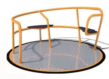 全体が回転する遊具。回してもらったり、脚でこいだりすることで動きます。座ったままでも立ったままでも利用できるように設計されており、車椅子のまま乗ることもできるアクセスフリー遊具です。