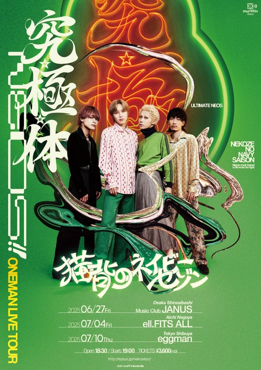“猫背のネイビーセゾン pre. ONEMAN LIVE TOUR「究☆極☆対NEOS!!」(読み:アルティメットネオス)”と題された今回のツアー。大阪、名古屋、東京の3公演全てがワンマン公演、猫背の魅力を余すことなく浴びることができるツアーとなる。