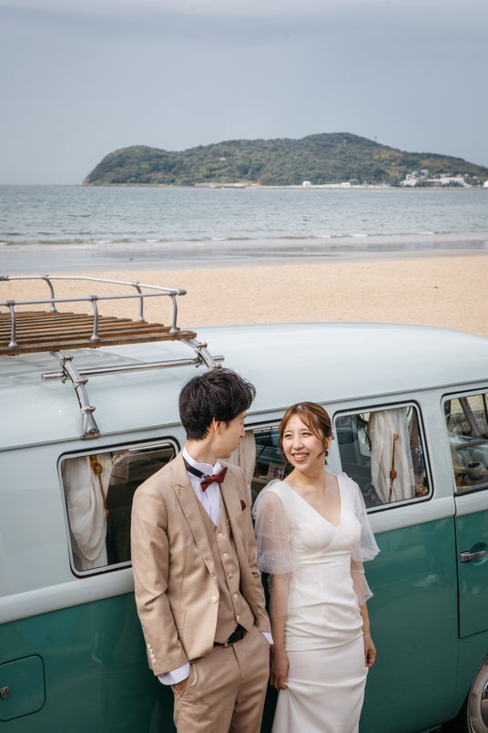 福岡糸島や福津で撮る「ワーゲンバスで旅するウェディングロケーションフォト+スタジオセルフフォト」プランが登場。