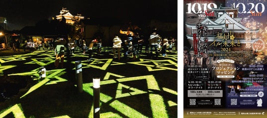 福知山城のふもとに位置するゆらのガーデンでは、体感型プロジェクションマッピングが芝生に映し出され、会場を光で演出します。福知山城では、2日間で異なるイベントを開催。1日目は、昨年1万人が来場するなど大反響をいただいたお城を舞台としたお化け屋敷ハロウィンイベント「キャッスルホラーナイト」を今年も開催いたします。2日目は一転その姿を変えて、福知山城を竹灯籠の優しい灯りで彩る光の回廊やお城正面にストリートピアノを設置するなど様々なイベントを開催します。