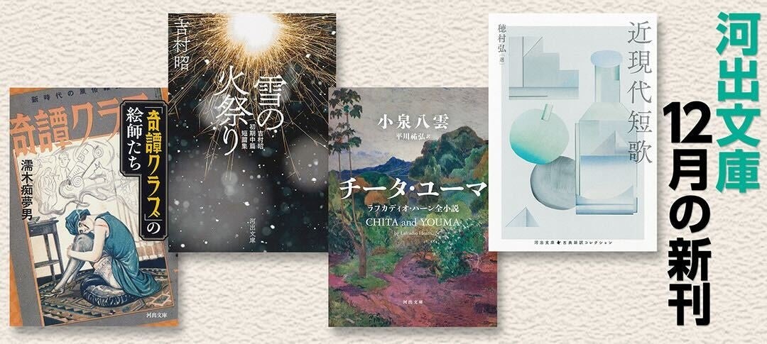穂村弘選『近現代短歌』、小泉八雲著/平川祐弘訳『チータ・ユーマ』、吉村昭初期中篇・短篇集『雪の火祭り』、伝説の雑誌の裏面史『「奇譚クラブ」の絵師たち』、4点を発売!【河出文庫12月の新刊】