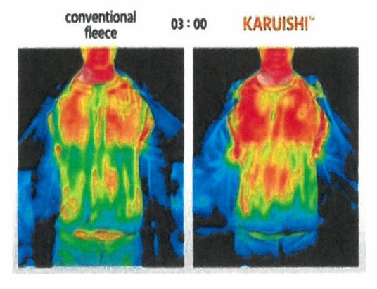 ■サーモグラフィー 当社従来品ジャケット(左)/ KARUISHI素材使用のジャケット(右)比較