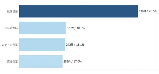 1,502件の回答のうち、仮性包茎の方が46.5%(699件)で最多でした。