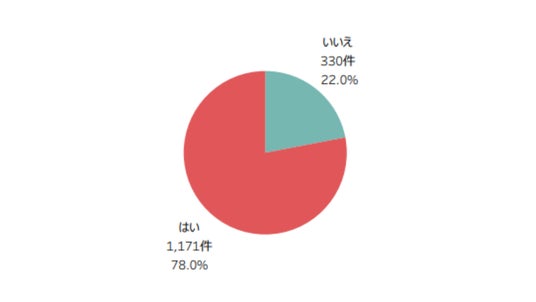 1,501件の回答のうち、性交渉の経験があるのは78.0%(1,171件)で、残り22.0%(330件)の方は経験なしでした。