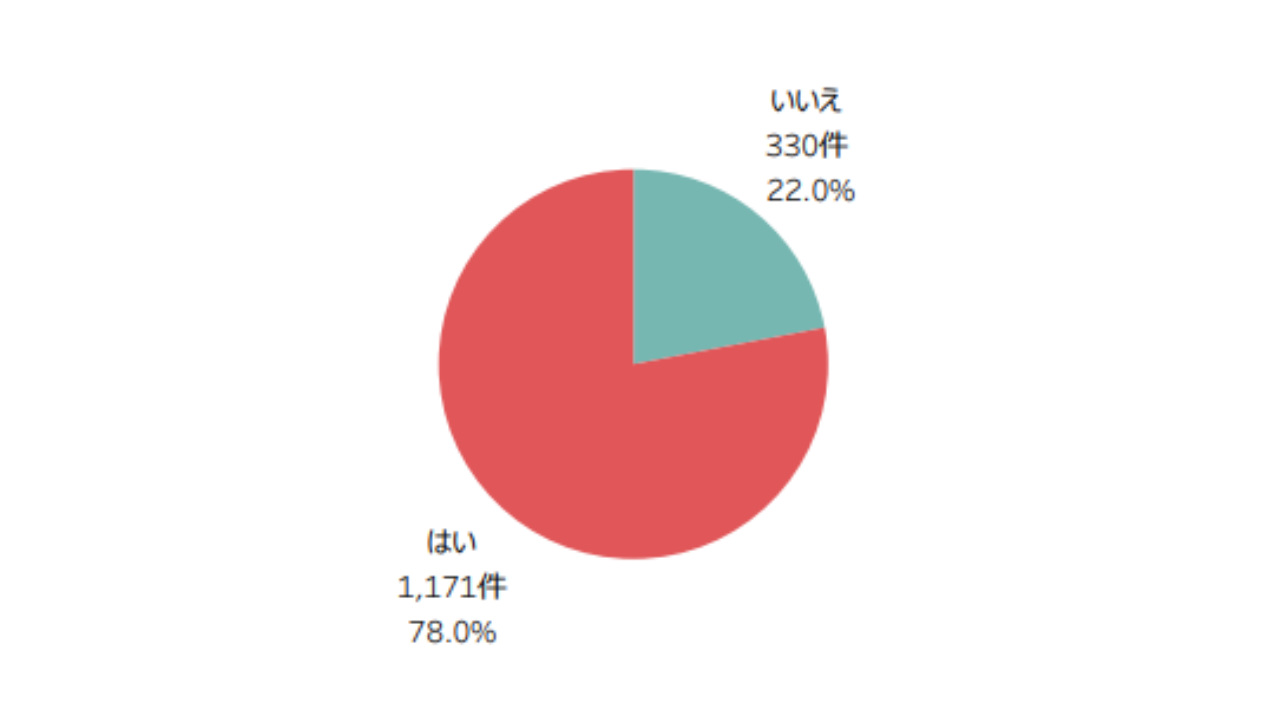 1,501件の回答のうち、性交渉の経験があるのは78.0%(1,171件)で、残り22.0%(330件)の方は経験なしでした。