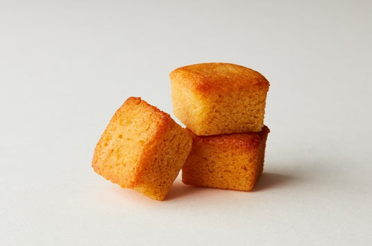 コンデンスミルクとバターがハーモニーを奏でるフィナンシェ。ミルクを砂糖で煮詰めた甘くてとろんとしたコンデンスミルク。バターはニュージーランドで放牧され、牧草で育った牛のミルクから作られる「グラスフェッドバター」。βカロチンが多く含まれる濃い黄色の色合い、上品なコクとあっさりとした後味が特徴です。ミルクがぎゅっと濃縮されたコンデンスミルクとグラスフェッドバターを一緒に煮詰めて焦がしバターミルクを作り、フィナンシェ生地に混ぜ合わせて、可愛らしく、親しみやすいキューブ型にして焼き上げました。ケーキの各面が均等に焼けることで、ふんわりとした食感に仕上がりました。