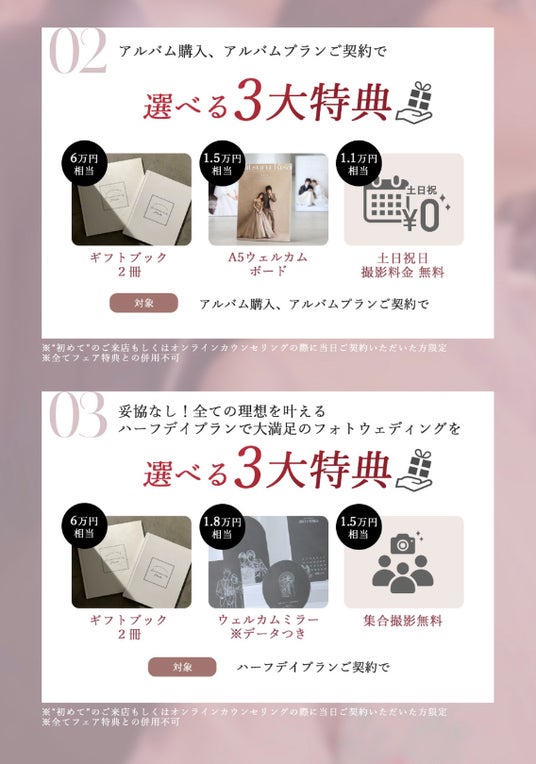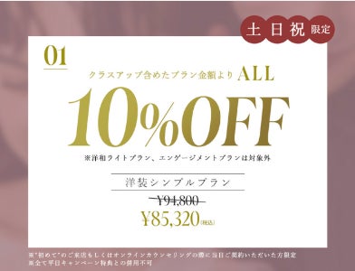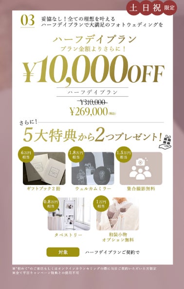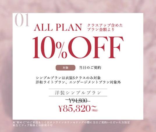 1.全プラン対象 当日契約で衣装クラスアップ含めた基本価格より10%OFF