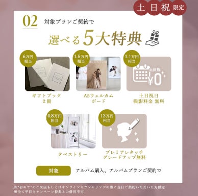 2.アルバムプランの契約で選べる5大特典!下記より1つ