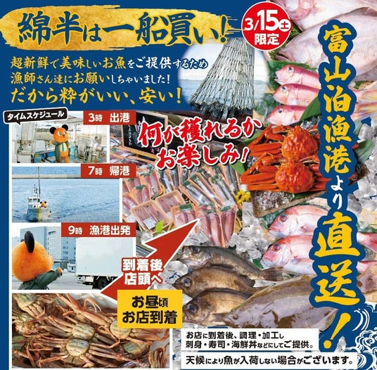 綿半各店舗で富山泊漁港の“超新鮮”海の幸を特別販売!- 3月15日限定「一船買い」開催!