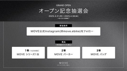 株式会社ライスカレー(本社:東京都渋谷区、代表取締役:大久保 遼、証券コード:195A)の連結子会社で、日本発の電動アシスト自転車ブランド「MOVE.eBike」を展開するMOVE株式会社(本社:東京都墨田区、代表取締役:冨田 大揮)は、東京・恵比寿におけるブランド初の店舗「MOVE.TOKYO」にてオープンイベントを実施いたします。
