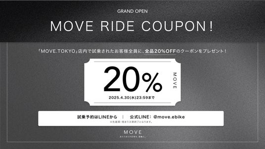 「MOVE.TOKYO」店内で試乗されたお客様全員に、全品20%OFFのクーポンをプレゼント!