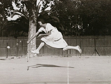 ジャック・アンリ・ラルティーグ 《スザンヌ・ランランのトレーニング、ニース》 1921年 ゼラチン・シルバー・プリント