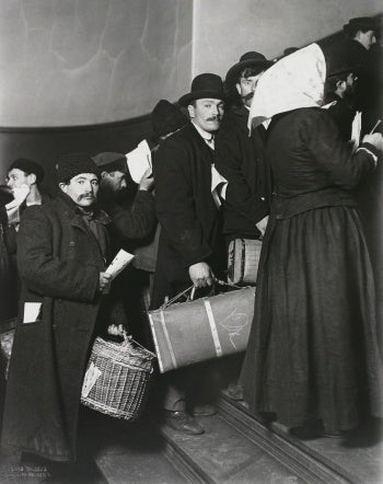 ルイス・ハイン《アメリカへ乗り込む、エリス島》1908年 ゼラチン・シルバー・プリント