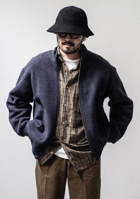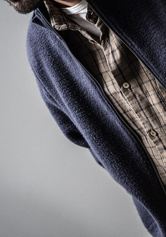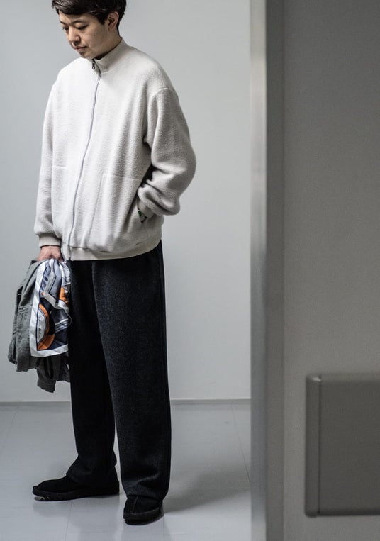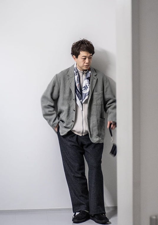 気兼ねなく着れる「普段着」でありながら、力を抜きつつも、きめたい時の「洒落着」にもなる。寒さに向けては、インナーにも暖かく足し込め、カーディガンやブルゾンのように羽織れるという「着回し」ができる。「普段着」「洒落着」「着回し」が、一つの線でつながった、丁度良い服がご用意できました。