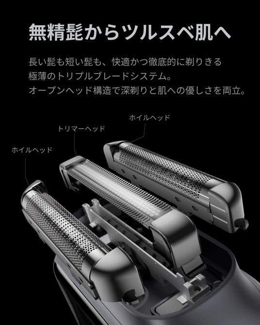 独自のトリプルブレードシステムとオープンヘッド構造により、長い髭も短い髭も、肌への優しさを保ちながら徹底的に剃りきります 。P3 Proには、手に振動を感じさせない強力なツイン高速リニアモーターを搭載しています 。