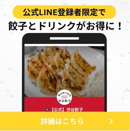 「餃子を囲んで、楽しいひとときを」。が渋谷餃子のコンセプトです。渋谷餃子の代名詞、薄皮餃子はご飯のおかずにも、おつまみにもぴったり。どんなシーンでも気軽に美味しく楽しめる本格餃子を提供したい。その想いからこだわり続け、独自開発した極限まで薄い皮で包んだ、自慢の本格餃子をご堪能あれ。