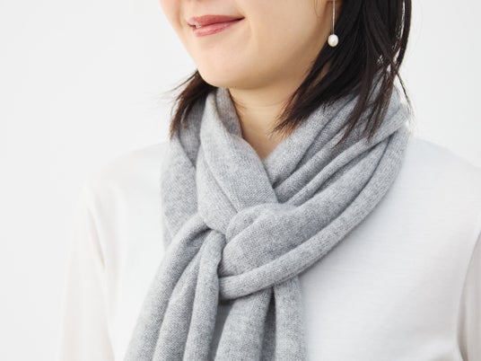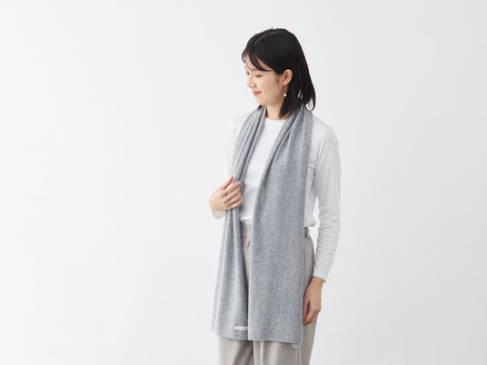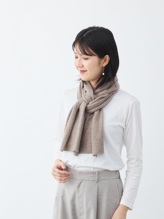 “育てるふわふわ”ホワイトカシミヤニットマフラー新登場。とろけるような心地よさ。1等級ホワイトカシミヤ100%