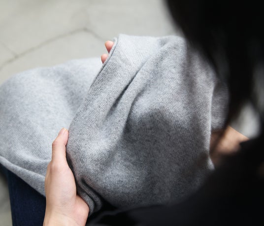 「カシミヤならではの軽くてなめらかな風合いをより感じていただけるよう、心を込めて編み上げました。