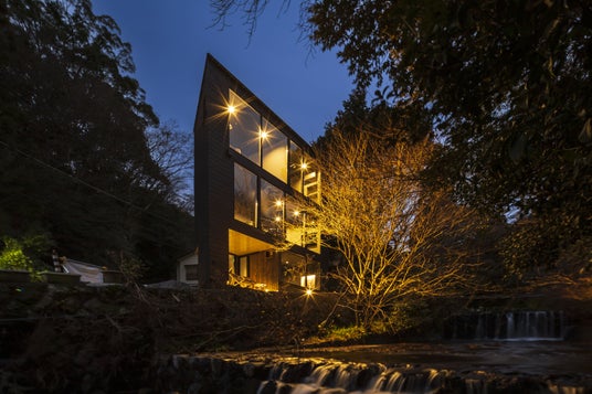 リビング、寝室、バスルーム、サウナに至るまで、すべての空間が川との一体感を追求。