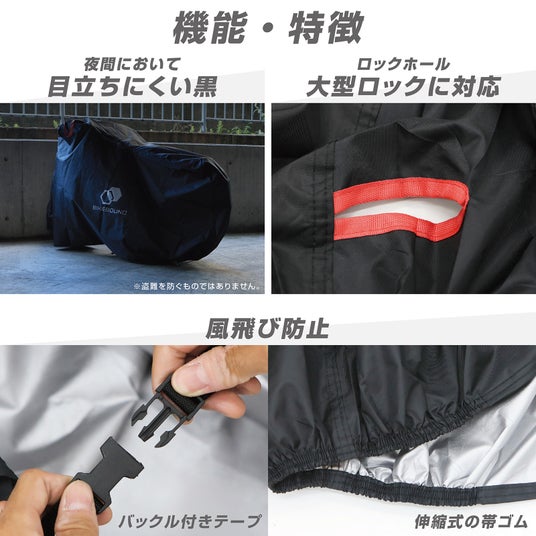 大型ワイヤーにも対応したロック用ループがついており、カバーと自転車をまとめてロックすることが可能です。