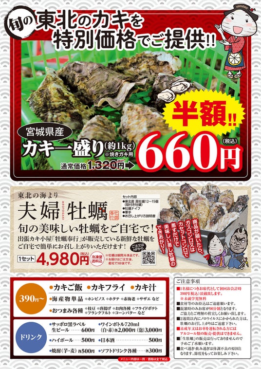 ▶︎東日本大震災で販路に苦しむ東北の牡蠣を多くの人に食べてほしいとの思いで、冬季限定の東北復興支援イベントとして全国各地で展開。