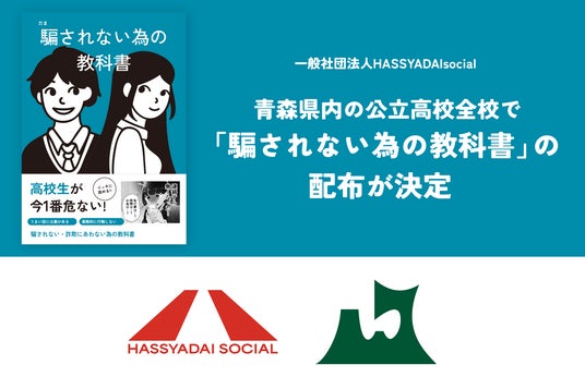 「Choose Your Life! それでもなお、人生は選べる。」をビジョンに掲げる一般社団法人HASSYADAIsocial(本社:東京都港区、代表理事:勝山恵一 三浦宗一郎、以下ハッシャダイソーシャル)が、近年増加する若年層をターゲットにした詐欺や悪徳商法の被害を減らすことを目的に制作した『騙されない為の教科書』が、青森県教育委員会により、高等学校と特別支援学校高等部68校21,263名へ配布されることが決定しました。本教材では、実例を交えながら詐欺や悪徳商法の実態を詳しく説明しており、被害にあわないためにどのような点に注意するべきか、また万が一被害に遭ってしまった場合どのような対応を取るべきかを、学ぶことができます。ハッシャダイソーシャルは引き続き、無料配布を希望する高校を全国から募集しております。ご希望の教育関係者の方は、申し込みフォームからお問い合わせください。