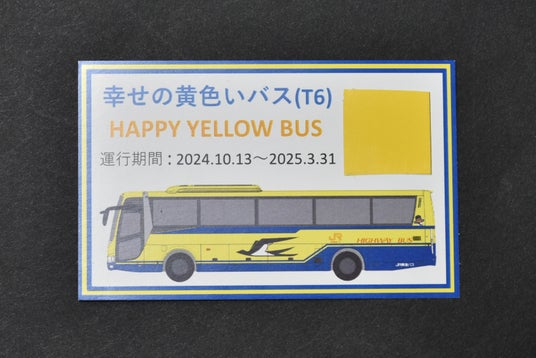 ※画像は実車です(写真提供:ジェイアール東海バス株式会社) ドクターイエローは運行ダイヤが非公表のため、偶然に目撃すれば幸せになれるとSNS上などで話題になっておりました。そして、この黄色いバスも、運行ダイヤこそ公表されてはいるものの、ドクターイエローと同じ配色でラッピングされた1台限定のバスであり、同T4編成とT5編成に次ぐ「T6編成」を自称していたことから、「幸せの黄色いバス」として注目を集めました。