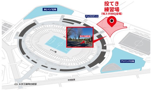 【FC東京 味スタBBQ】開催会場:味の素スタジアム投てき練習場(京王線飛田給駅より徒歩5分、西武多摩川線多磨駅より徒歩20分)