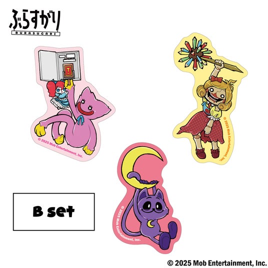 ※全6種のブラインド商品です。 ・Poppy Playtime ぶらすがりダイカットステッカー(A/B) 大人気ホラーゲーム「Poppy Playtime」 より、ぶらすがりシリーズのダイカットステッカーが新登場!