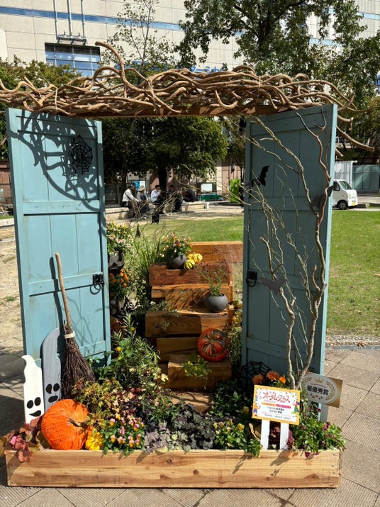 「花で楽しむハロウィン」をコンセプトに公園内を花で彩り、都心に憩いの空間を提供することを目的としたイベントです。花の装飾だけでなく、市民と一緒につくる花壇や、ハロウィンを楽しむオブジェなど、さまざまな活動を通して、福岡のまちの風景づくりに、市民と一緒に取り組みました。