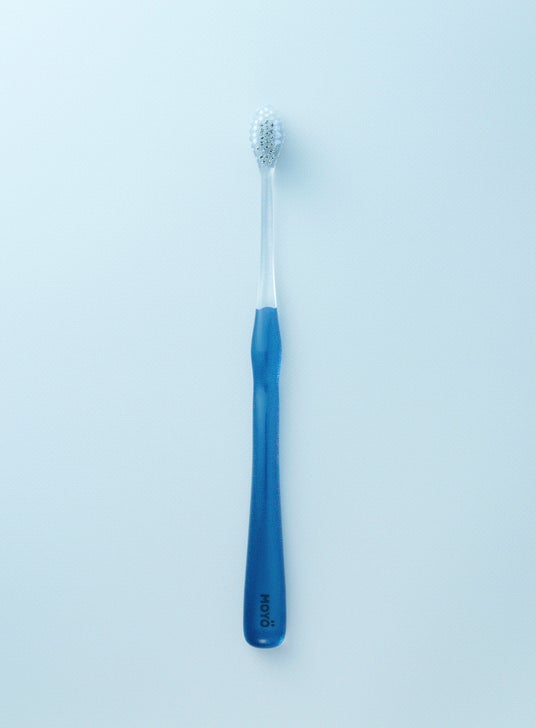 「TOOTHBRUSH M-blue」 MOYÖのロゴをトリミングしたシグネチャーモデル  株式会社フォーワテック・ジャパン(本社 新潟県三条市、代表取締役 田中義晶)は、販売終了から3年の歳月を経て、新たなデザインコンセプトで「MOYÖ歯ブラシ」をリニューアル。