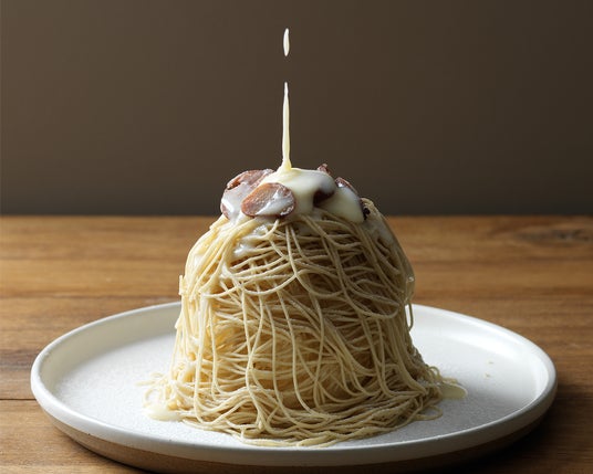 ダージリン香るルタオで人気のチョコレート「ロイヤルモンターニュ」と和栗を掛け合わせた紅茶風味のマロンクリーム を、絞りたてで召し上がりいただくモンブランです。
