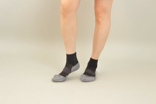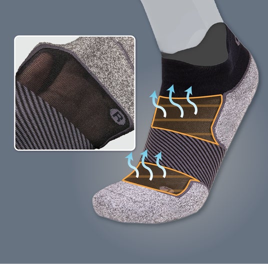 つま先はゆったりなのに、中足部はキュッとほどよい着圧で安定感を向上。ストッキングのような極薄パネルがクーリング効果と第二の皮膚のようなフィット感をもたらします。Yゴアヒールで激しく機敏な動作でもズレにくく、シームレスな内部とナノ竹炭クッションで足裏を摩擦と衝撃から保護。吸湿・抗菌繊維が蒸れや臭いにも対応します。